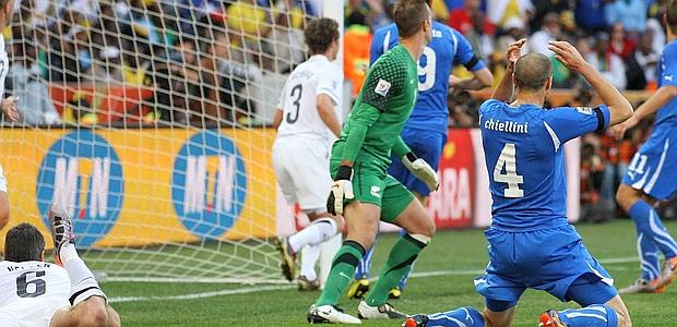 Invece si fa subito dura. Come contro il Paraguay (che nel pomeriggio si era sbarazzato facilmente della Slovacchia) pensiamo bene di complicarci la vita. Becchiamo immediatamente gol grazie ad un impacciato Cannavaro e ad un guardalinee che si dorme il fuorigioco. Che c'è, ma non è facile da rilevare. Poi reagiamo, attacchiamo. Male, ma lo facciamo. Prendiamo un palo clamoroso con Montolivo, successivamente l'arbitro ci concede un rigore. Che c'è, ma non si capisce come cavolo il direttore di gara abbia fatto a vederlo.